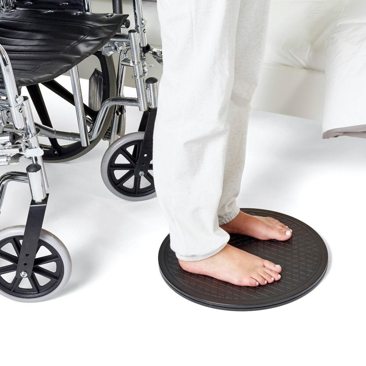 De draaischijf voor personen is een handig hulpmiddel om staand of zittend veilig te draaien, bijvoorbeeld van een stoel naar het bed of van de rolstoel naar de bank. Dankzij het stevige kunststof ontwerp draait de schijf soepel 360° in alle richtingen, wat het risico op overbelasting van rug of knieën vermindert.