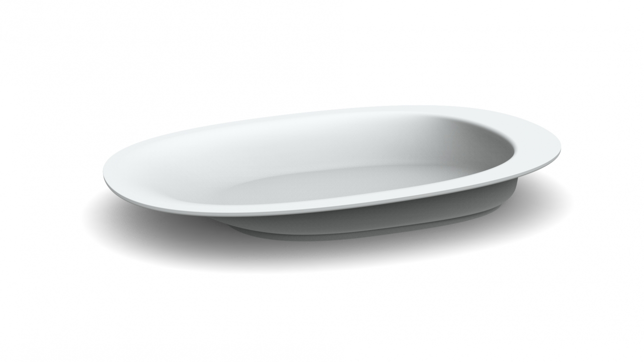 Het Henro Bord is speciaal ontworpen om het eten gemakkelijk te maken. Het Henro bord is ovaal van vorm en heeft aan 1 kant een opstaande rand en aan de andere zijde een afgerond rond.