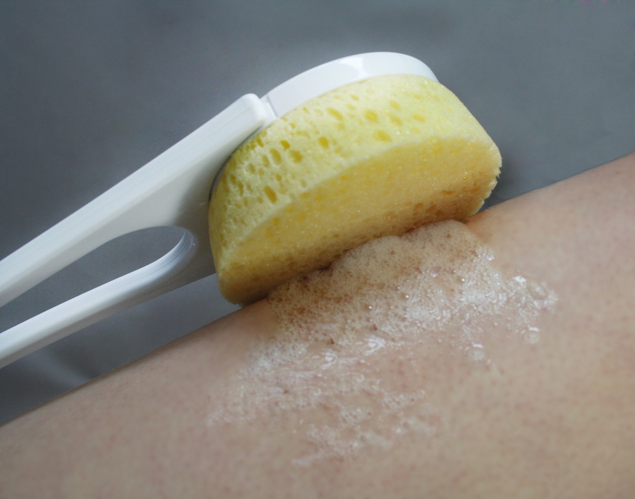 De spons is ideaal om onder de douche of in bad te gebruiken , door de spons op de gebogen lange steel te plaatsen kunt u zich zelfoveral goed wassen zonder moeilijke houdingen aan te nemen of te bukken.