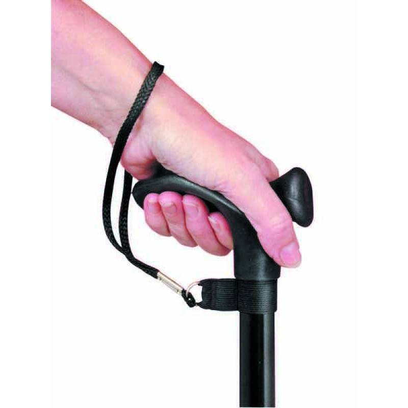Heel handig, bijvoorbeeld in een winkel. De stok blijft aan je pols hangen als je iets wilt vastpakken.