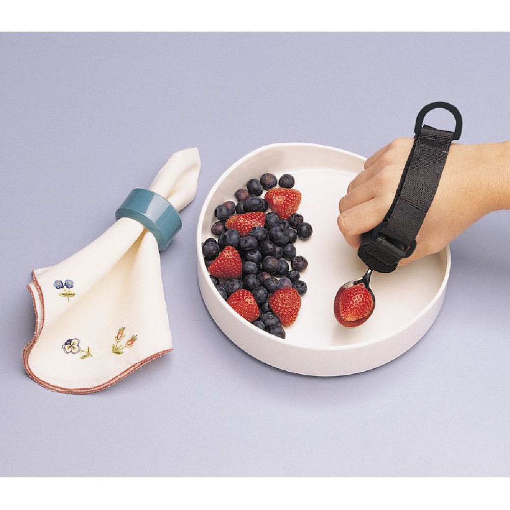 De verstelbare bestekhouder van Able2 wordt merendeel toegepast als hulpmiddel bij het eten. Uw vork of lepel is hier eenvoudig in te plaatsen en helpt u het bestek vast houden. Dit is zeer geschikt voor personen die moeite hebben om het bestek vast te houden en graag zelfstandig willen blijven eten. De opening waar uw hand door gaat is met klittenband verstelbaar voor een palm omtrek van 18 t/m 20 cm en heeft een opening van 7,6 cm.