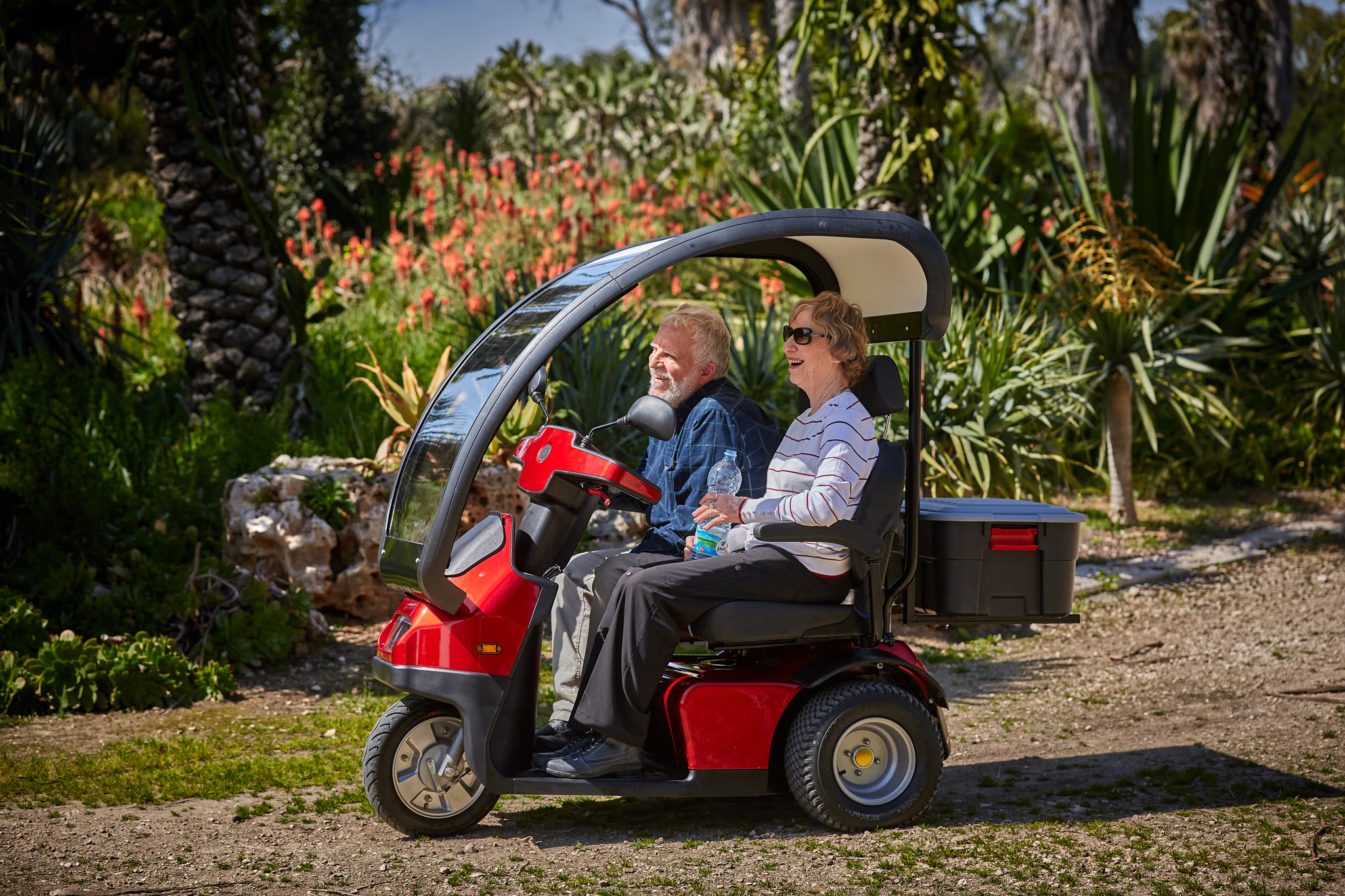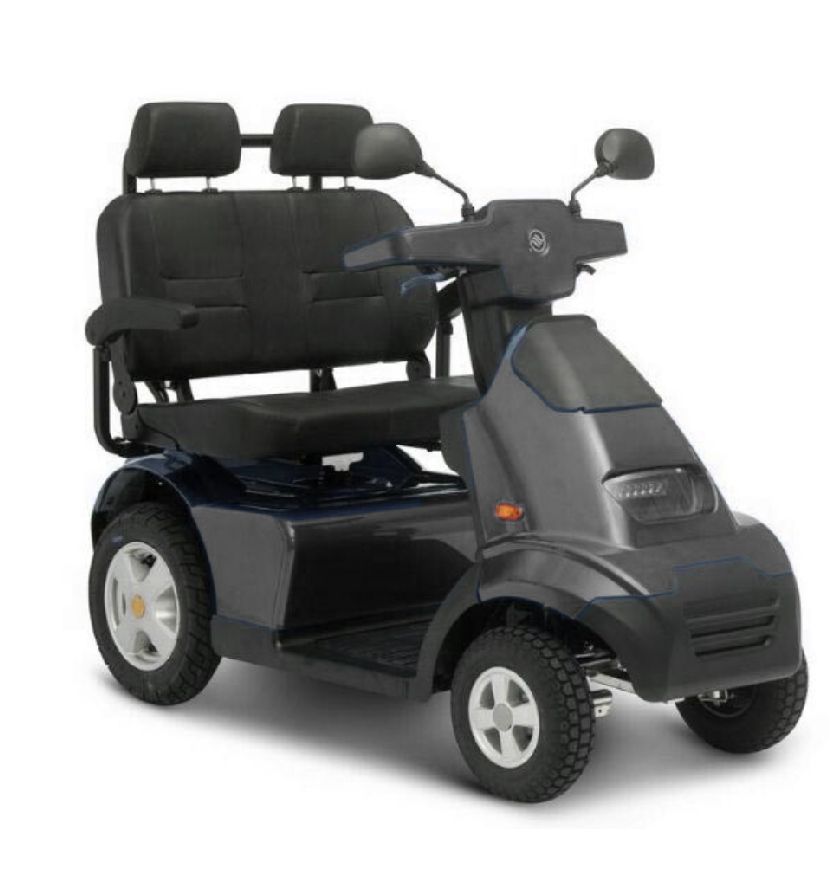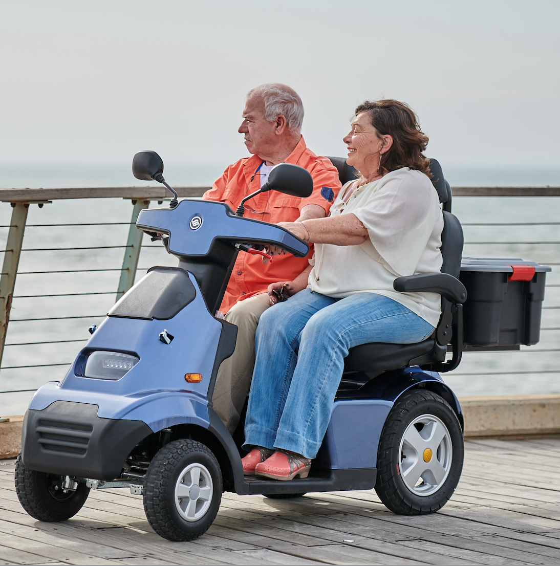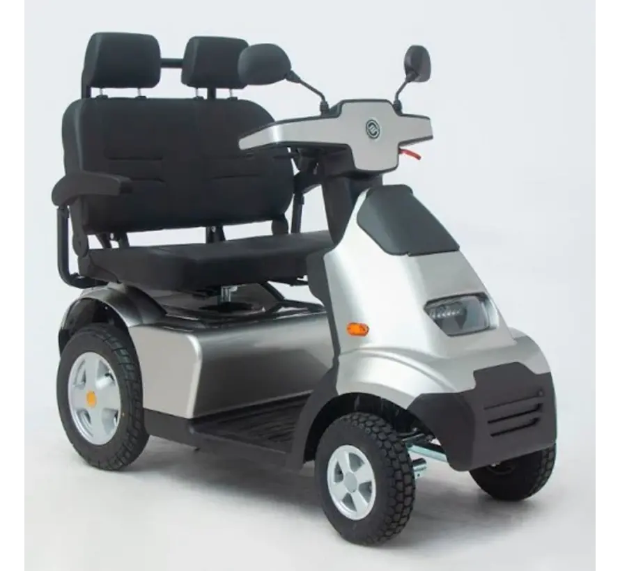 De Afikim S4 Duo is de enige 2-persoons scootmobiel die een topsnelheid van 18 km/u combineert met schokbrekers op de achterwielen. Dit garandeert ultiem rijcomfort voor twee personen, op elke ondergrond.