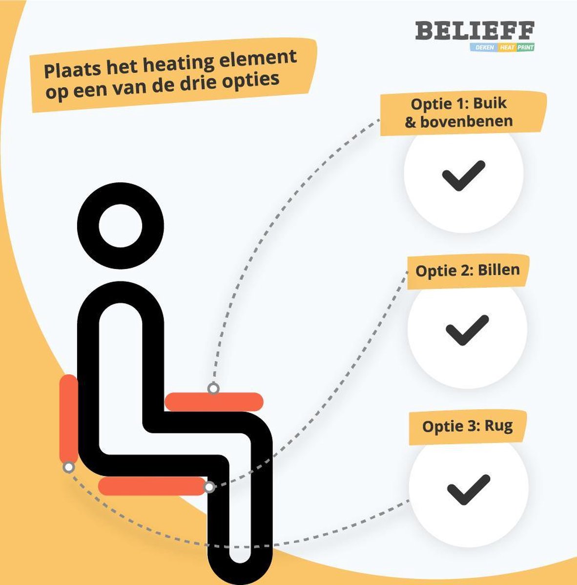 Bevestigingsmogelijkheden in de voetenzak, dijbenen, romp en/of billen. Het draadloze verwarmings element verspreid een aangename warmte en beschermt je tegen de koude dagen in de in- en outdoor! Deze verwarmings uitbreiding is eenvoudig met klittenband te bevestigen in de rolstoel en scootmobiel dekens van belieff op 3 posities in de dekens. Ook kan deze los gebruikt worden om te plaatsen tegen uw lichaam waar u wilt. Geschikt voor binnen en buiten.