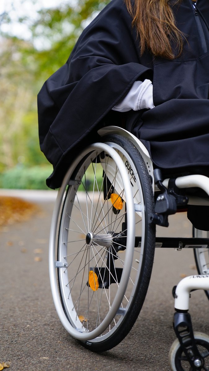 De extra lange achterkant zorgt ervoor dat je benen en het zitvlak van de rolstoel goed bedekt zijn, terwijl de voorkant kort genoeg is om soepel te blijven bewegen.