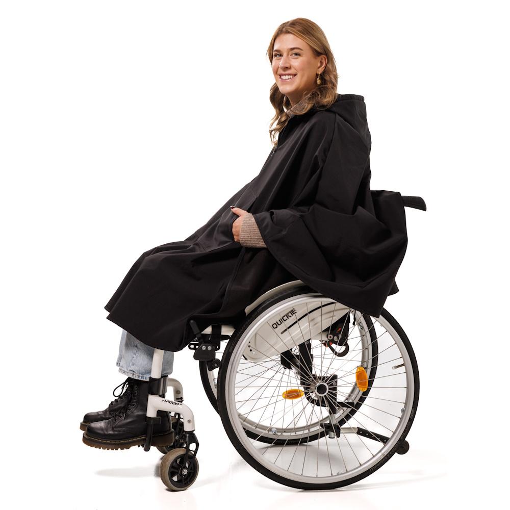Deze poncho is afgestemd op de behoeften van rolstoelgebruikers van alle leeftijden. Of je nu zelf in een rolstoel zit of zorgt voor een ouder of kind met een beperking, deze poncho maakt het buitenshuis gaan een stuk comfortabeler. Dankzij de ruime pasvorm past hij over bijna elke jas en rolstoel.