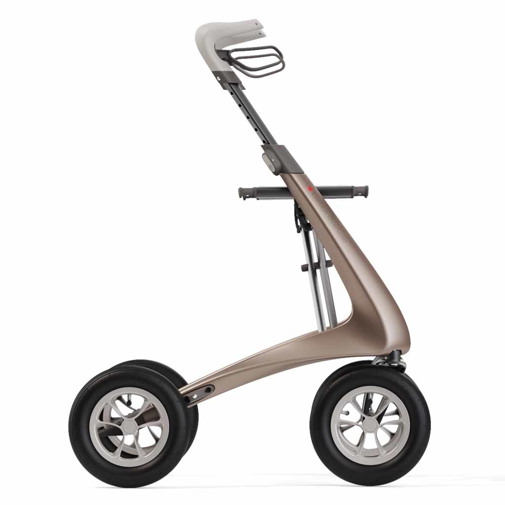 De Overland Carbon rollator is speciaal ontworpen met grote luchtbanden voor optimaal comfort en loop gemak op oneffen ondergronden. Zijn lichte gewicht maakt het lopen en vervoeren van de unieke rollator zeer makkelijk.