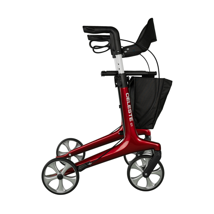 Met zijn strakke lijnen en eigentijdse kleurenopties – groen, rood, blauw en zwart – past de Celeste rollator perfect bij een moderne levensstijl. Het ontwerp is niet alleen functioneel, maar ook esthetisch aantrekkelijk.