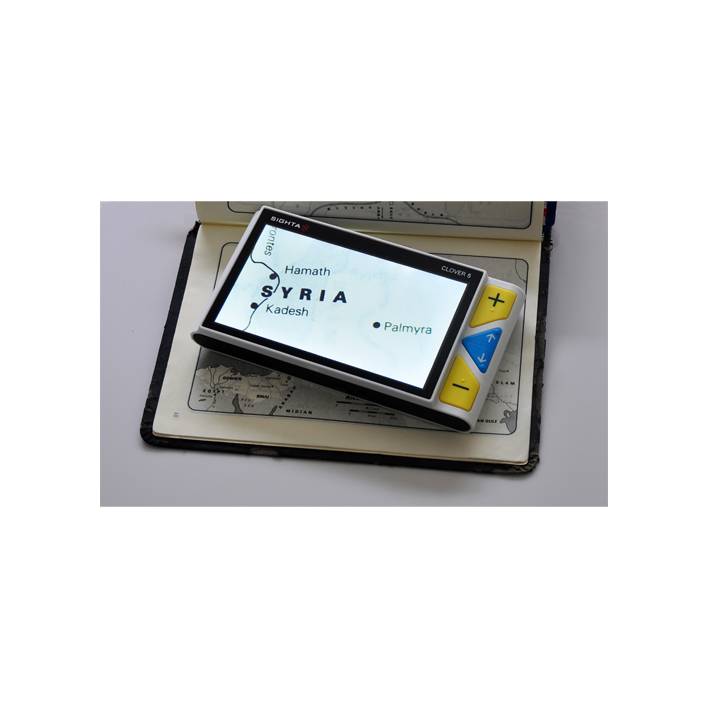 De Clover 5 elektronische handloep heeft een ideaal formaat om makkelijk mee te nemen en toch een ruim en duidelijk scherm. De Clover 5 is ideaal en makkelijk in gebruik, zo kunt u de teksten en objecten 4 tot 20 x vergroten. Dit is ook fijn aan een elektronische leesloep dat je hem altijd kunt instellen naar de wens van het moment, en niet zo als met een normale leesloep dat je altijd vast zit aan 1 vergroting. Het vergroten gaat zeer eenvoudig met de duidelijke plus en min toetsen. Het beeldscherm diagonaal is circa 13 cm.
