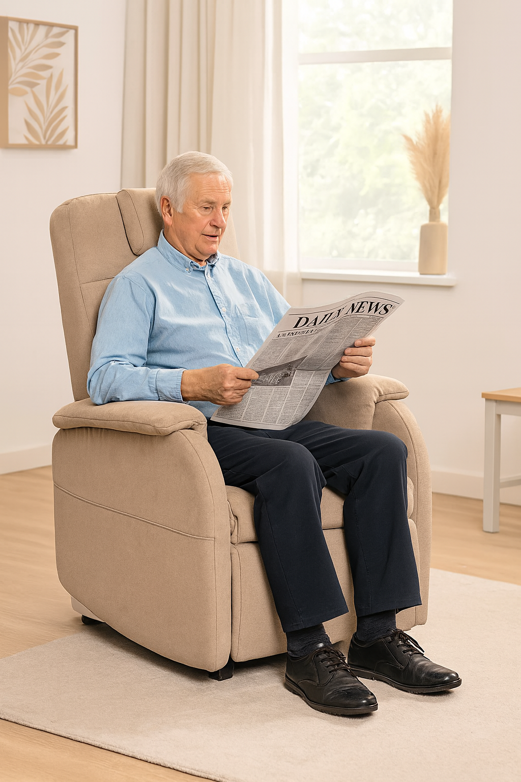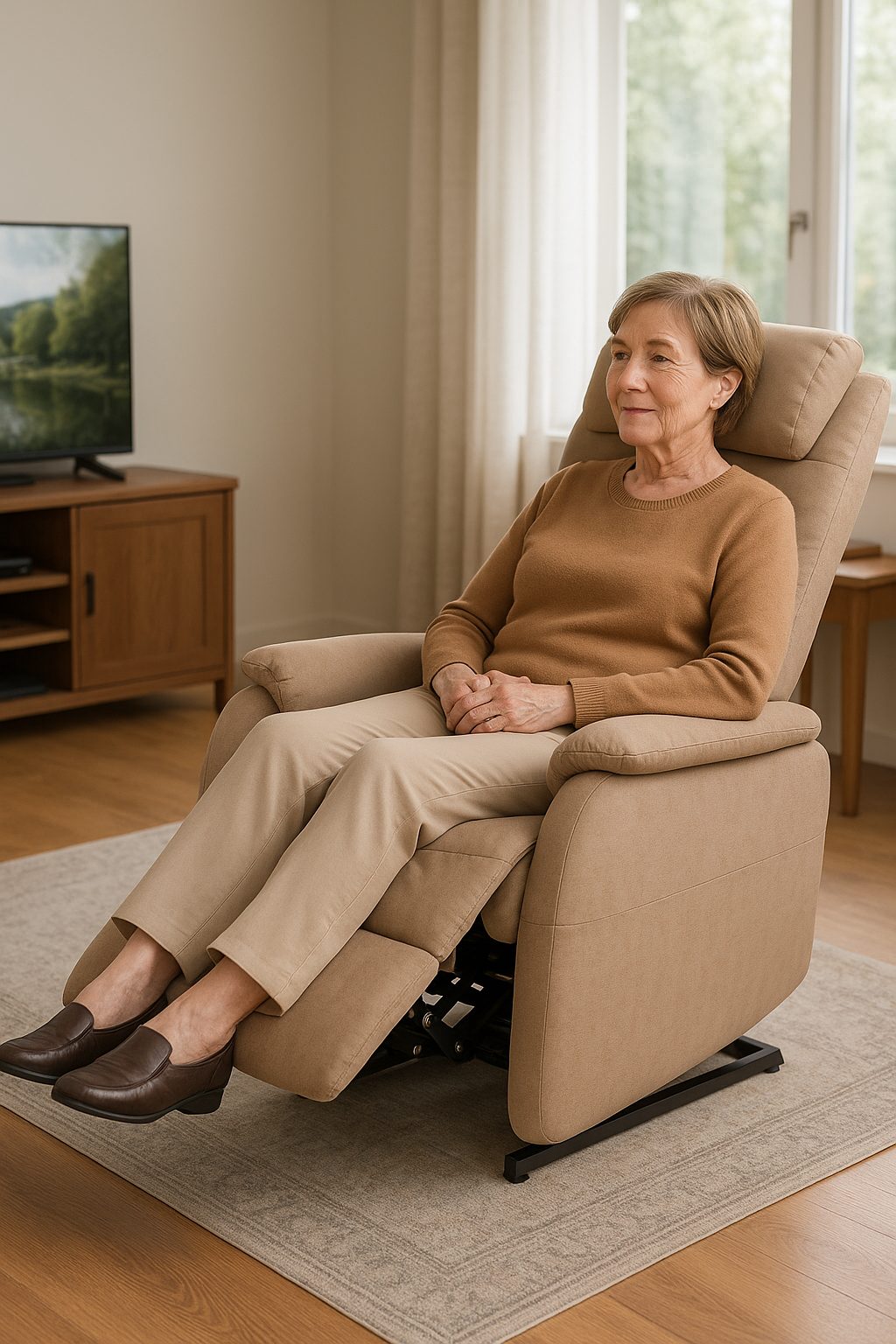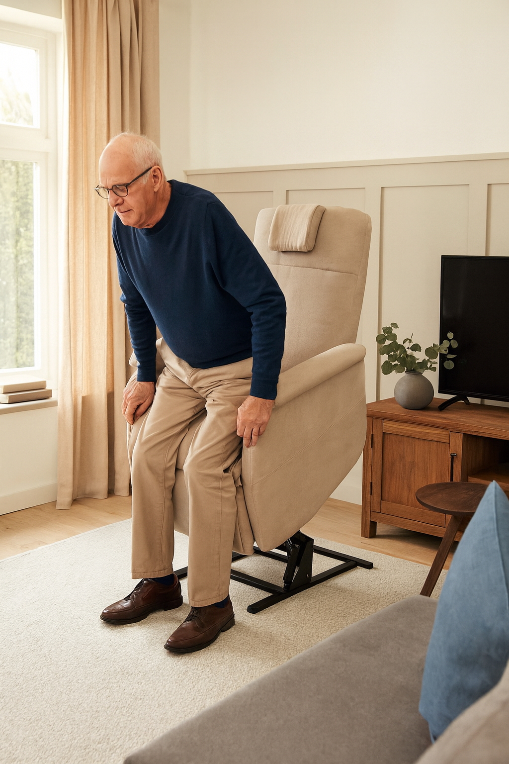 De Doge Eleganza helpt je moeiteloos opstaan dankzij de sta‑op functie die je via de afstandsbediening bedient. De stoel kantelt soepel omhoog en ondersteunt je lichaam veilig bij het opstaan. Zo sta je comfortabel, zonder inspanning op eigen kracht.