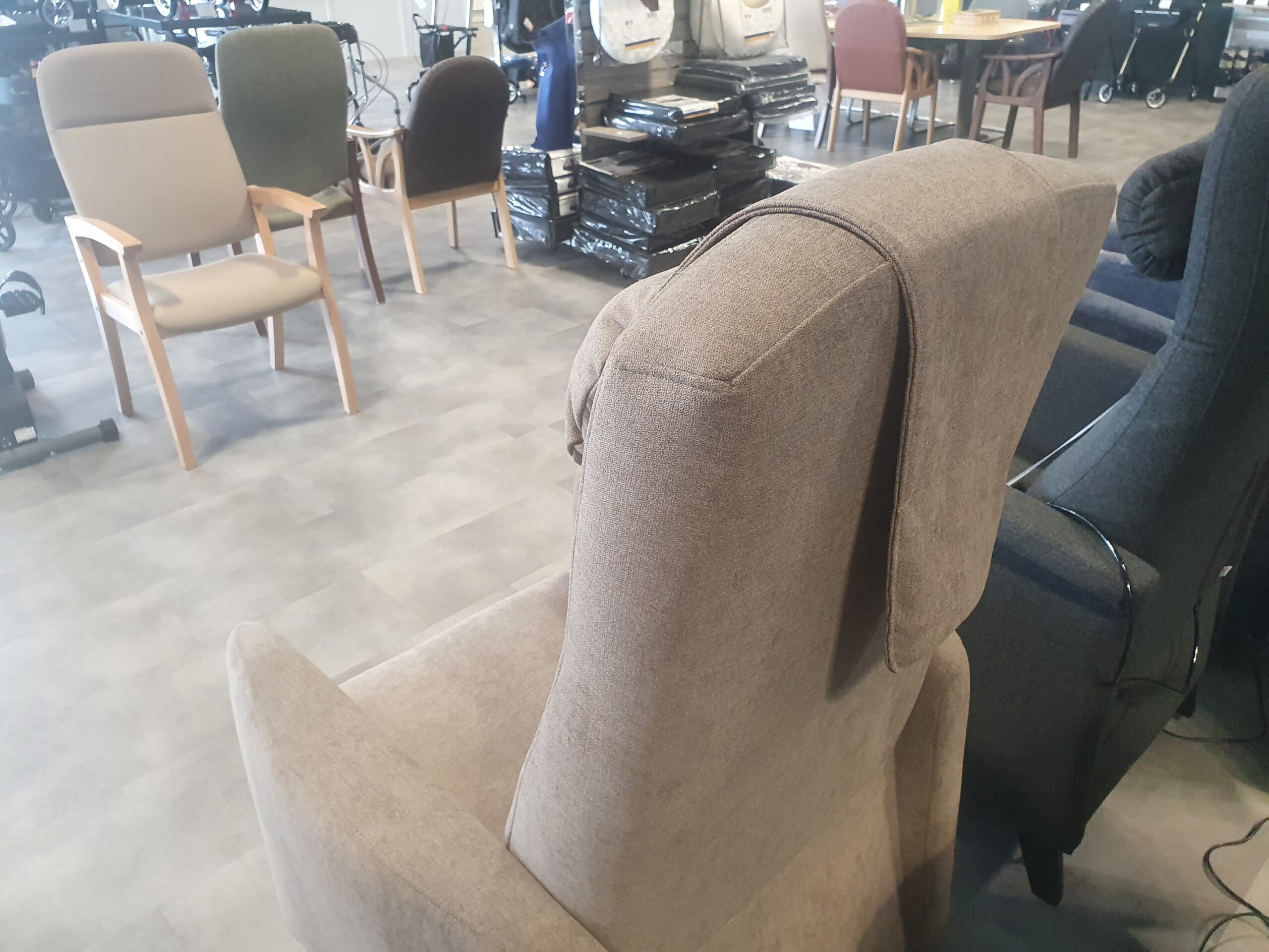 Hoofdkussen voor de Doge sta-op stoelen wordt in de dezelfde stof soort en kleur geleverd als de stoel in de showroom op voorraad om te bekijken en te proberen. Het hoofdkussen is met een loodflap te verstellen naar de hoogte die u wenst.