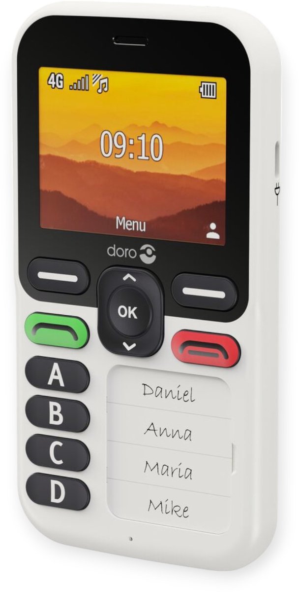 Met de vier directe sneltoetsen (A, B, C en D) kun je met één druk op de knop een vertrouwd contact bellen. Geen ingewikkeld menu of kleine toetsen om te zoeken — gewoon de persoon die je wilt bereiken direct selecteren.