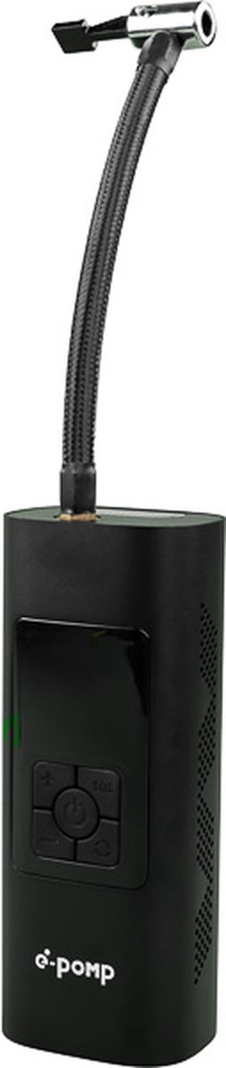 Vergis u niet in het compacte design van de pomp, eenmaal opgeladen kan de accu namelijk 45 minuten gebruikt worden, hierdoor heb je altijd voldoende lucht bij de hand in geval van nood of om de benodigde band weer op te blazen .