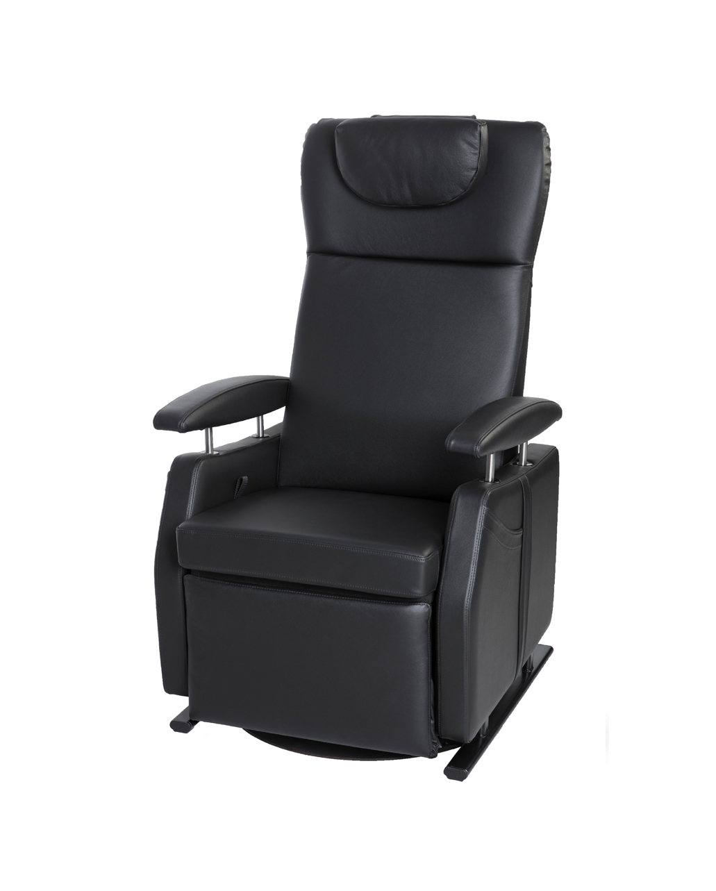 Als de draaifunctie niet nodig is, staat de stoel stevig op zijn poten. In de normale zitstand is het plateau nauwelijks zichtbaar en staat de stoel vast. De draaifunctie wordt actief door de fauteuil iets omhoog te zetten. Op dat moment kunt u de stoel tot bijna 360 graden draaien; daarna zorgt een ‘stopper’ ervoor dat de stoel weer stilstaat.