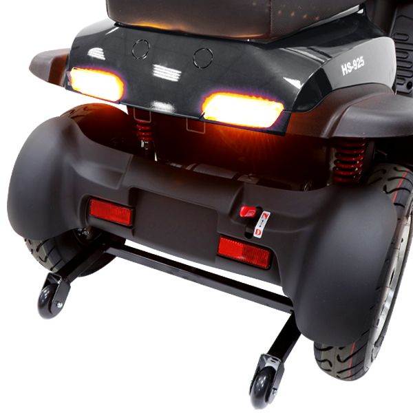 Standaard is deze scootmobiel uitgerust met anti-kiep wielen en automatische remverlichting op het moment dat u de gashendel loslaat en de scootmobiel afremt .