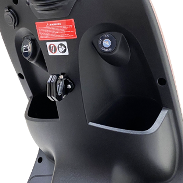 Onder de zitting zit een handig opberg vak dat afsluitbaar is en u makkelijk uw spulletjes droog kunt vervoeren. Aan de voorzijde aan de bestuurderskant heeft u ook nog kleine opberg vakken om wat handzame spulletjes in te doen