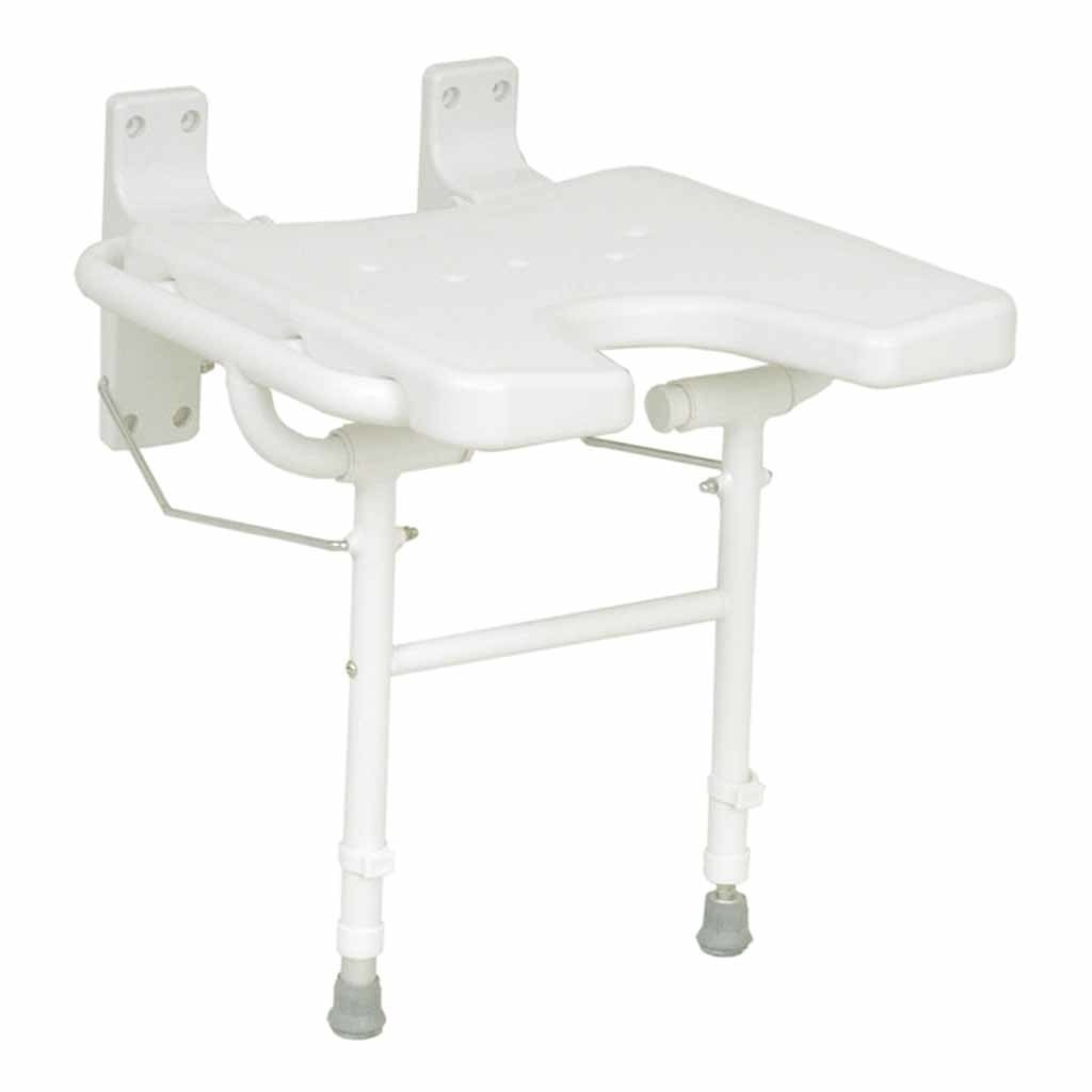 Deze fraai en ergonomisch afgewerkte douchezitting is opklapbaar en is ideaal als u ondersteuning onder de douche nodig heeft. Dit douchezitje heeft een hygiëne uitsparing en een verstelbare poten set voor extra ondersteuning die mee omhoog klapt als de douchezitting wordt ingeklapt. Deze douchezitting opklapbaar is ideaal als uw een kleine doucheruimte heeft want hij neemt weinig ruimte in beslag. De hulppoot onder het douchezitje is zeer geschikt om de draagkracht van de muur te ontlasten en zorgt voor een veilige en stabiele zitting.