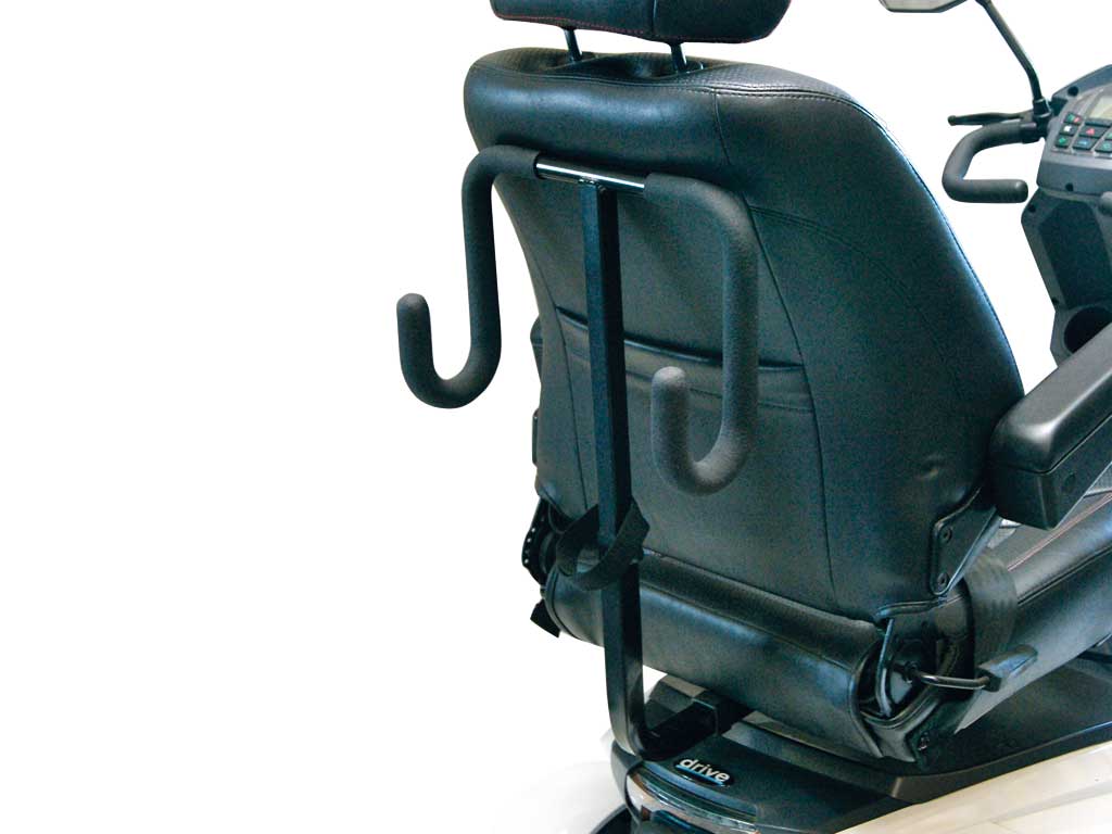 Uw rollator of opvouwbaar looprek meenemen op uw scootmobiel ? Met de rollatorhouder of looprekhouder van Drive kunt u eenvoudig uw rollator of opvouwbaar looprek mee nemen op uw scootmobiel. Deze hangt achter de zitting op uw scootmobiel zodat u hier geen hinder van heeft. Deze is alleen geschikt voor rollators die van voor naar achter inklappen. Het kan soms zijn dat de rollator of looprek half in de houder valt en u deze niet met het klittenband vast kunt maken wat op de houder zit. Dan is het verstandig deze met een extra sjorband aan de houder vast te maken