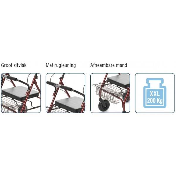 Mandje Van De Drive GoLite 200 XXL Lichtgewicht RollatorÂ