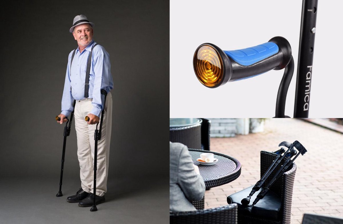 - Handvat elleboogkruk instelbaar van 77 tot 95 cm