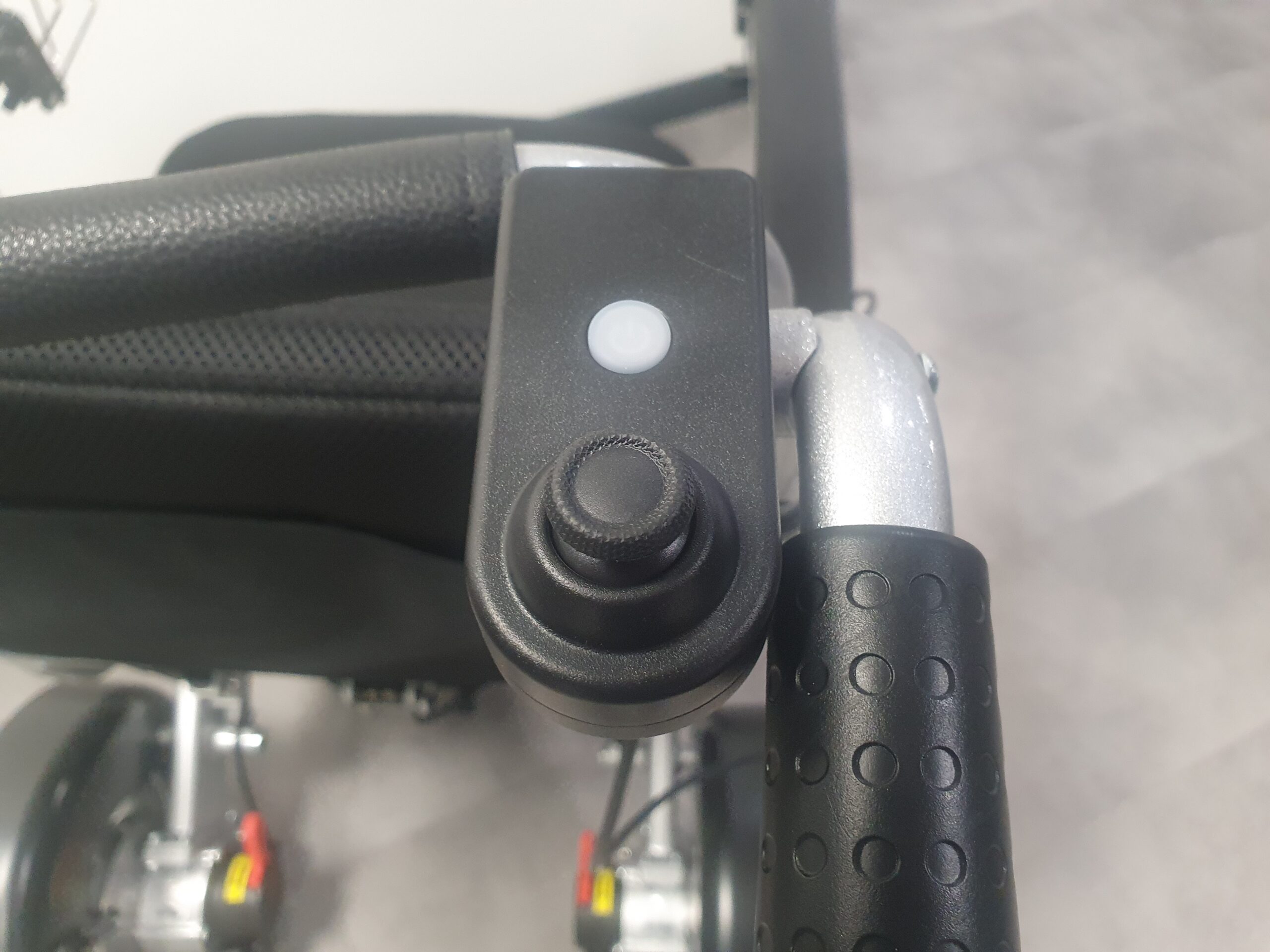 De duwondersteuning heeft een aan en uit knop waarmee u de rolstoel mee aan en uit kunt zetten en de snelheid begrenzer mee in kunt stellen zodat u deze kunt aanpassen aan uw eigen loop snelheid. Met de duim joystick kunt u de rolstoel alle kanten op volledig elektrisch bedienen. U hoeft dus zelf niks meer te doen.