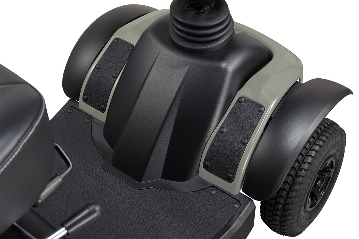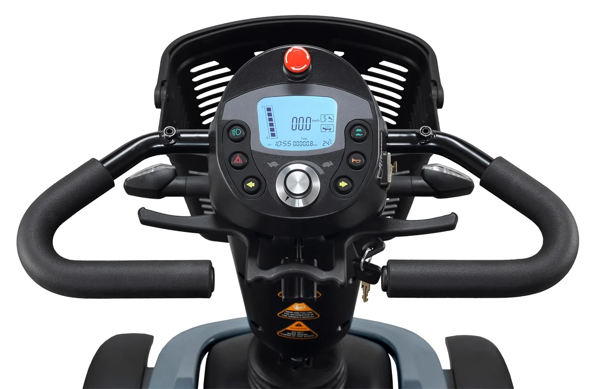 De scootmobiel is uitgerust met automatische remlichten en handige knipperlichten, zodat je veilig en duidelijk je richting aangeeft.