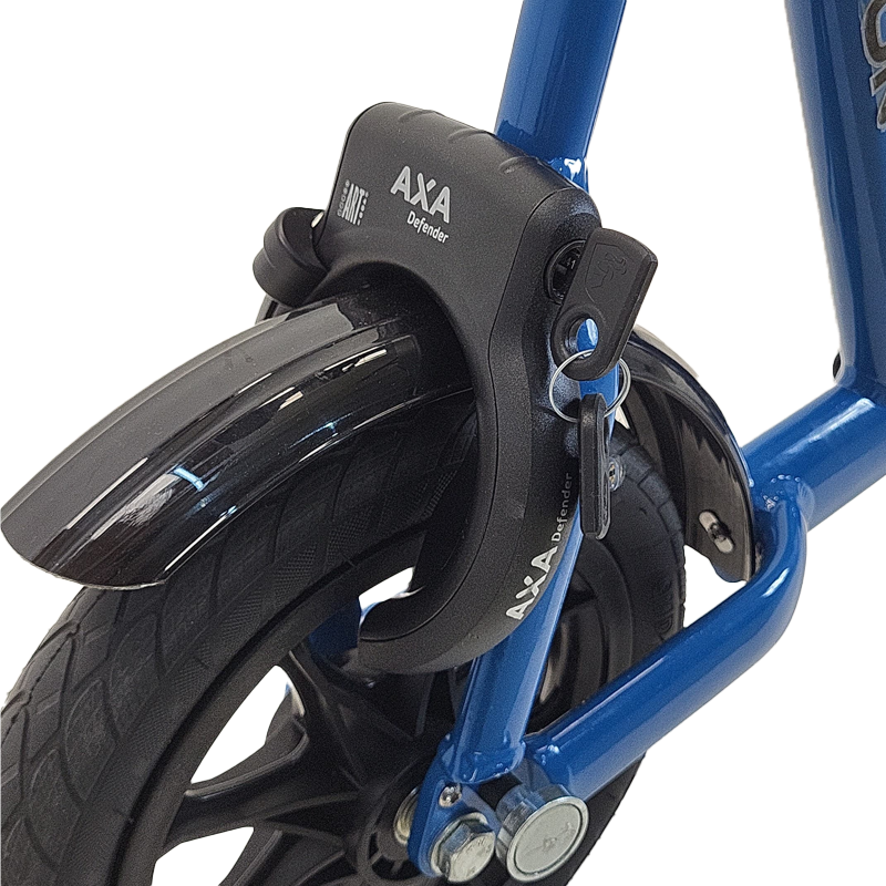 Wil je je GO-ON loopfiets veilig kunnen achterlaten? Dit AXA-frameslot biedt betrouwbare bescherming en wordt direct op het achterwiel gemonteerd.