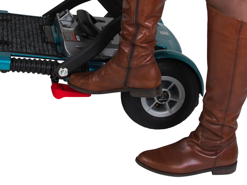 De Plus Versie heeft een handige voethendel waar u lichtjes op gaat staan met uw voet zodat de brio bijna vanzelf al inklapt tot een klein pakketje met een tilgewicht van slechts 23 kg. Ook het uitvouwen gaat met 1 handeling door de rode voethendel te bedienen.