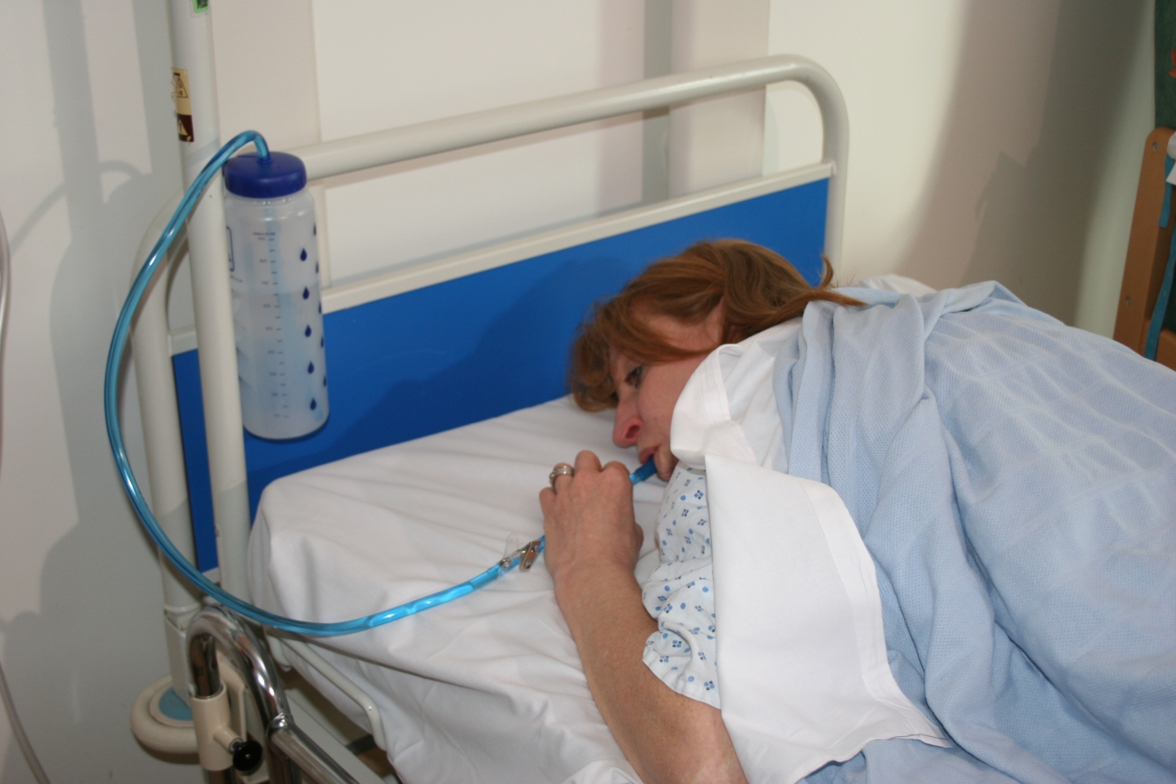 - Plaats het mondstuk aan het uiteinde van de slang in uw mond. Bijt vervolgens zachtjes op het mondstuk om te openen en begin met zuigen om te drinken.