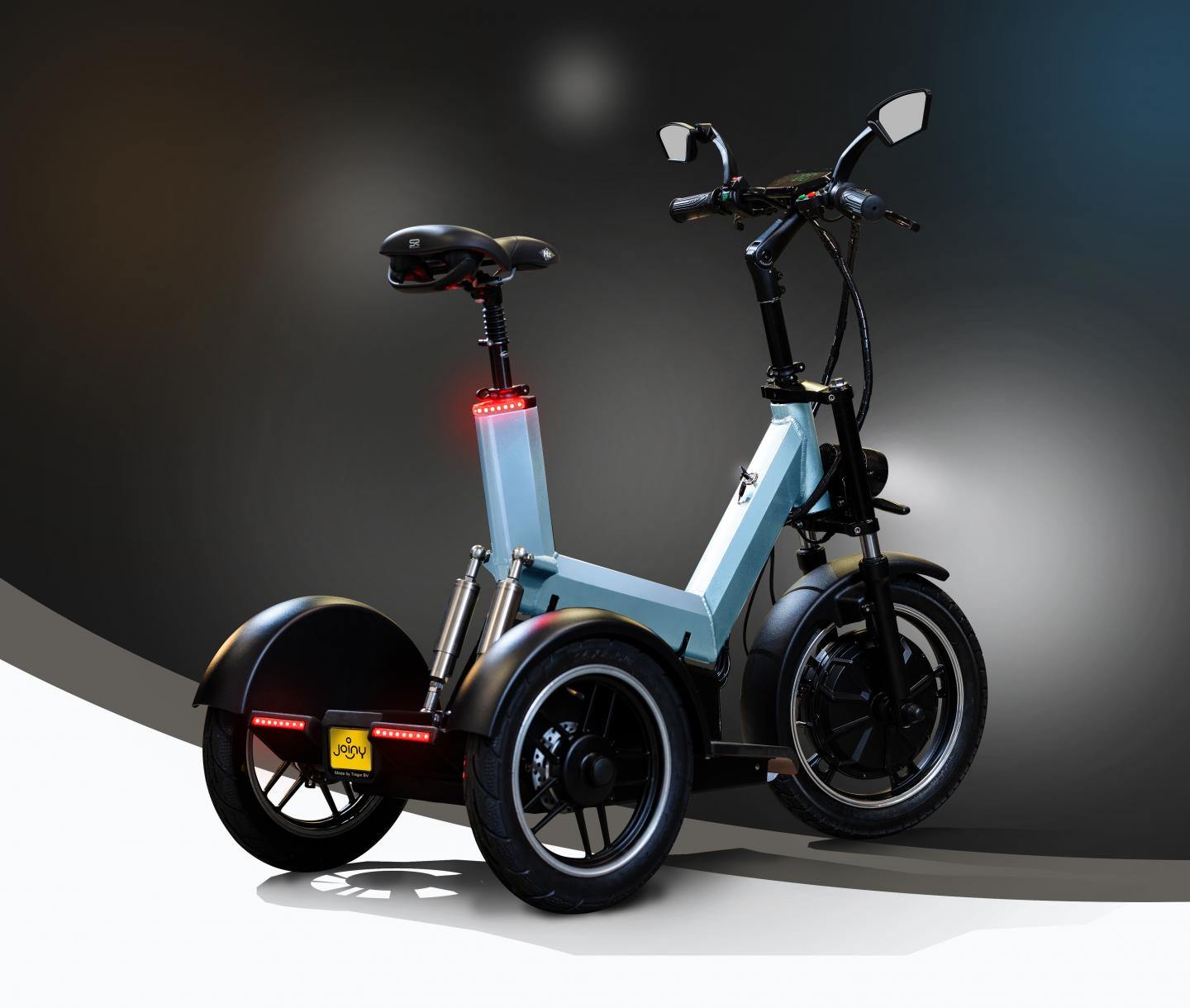 De Joiny is speciaal ontworpen om een natuurlijke en veilige rijervaring te bieden. Met drie wielen blijft u altijd stabiel, terwijl het gepatenteerde schaarsysteem zorgt voor maximale wendbaarheid. De elektrische ondersteuning maakt het eenvoudig om langere afstanden af te leggen zonder zware inspanning.