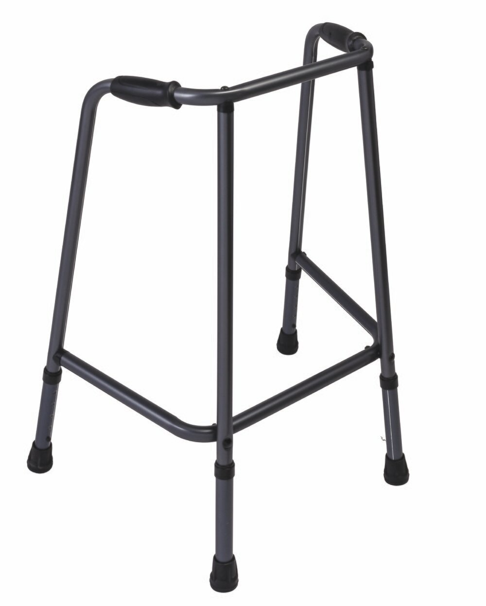 De onderzijde van dit looprek loopt schuin af zodat de krachten goed verdeeld worden en de kans om om te vallen met het looprek minimaal is . De anti-slip doppen zorgen ervoor dat het looprek niet kan gaan glijden en stabiel op de plek blijft.