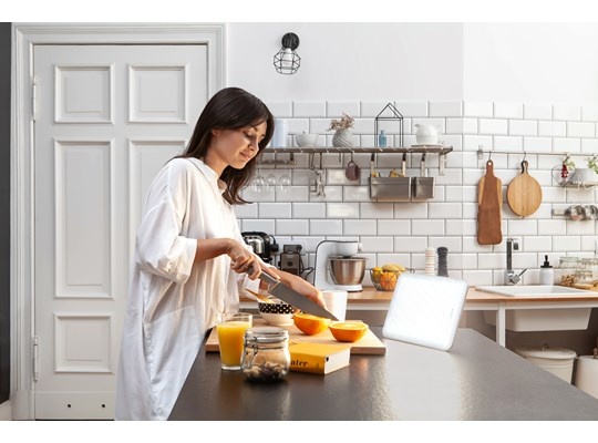 De Lumie Vitamin L daglichtlamp is een smalle lichttherapielamp die je overal kunt plaatsen en makkelijk kunt meenemen