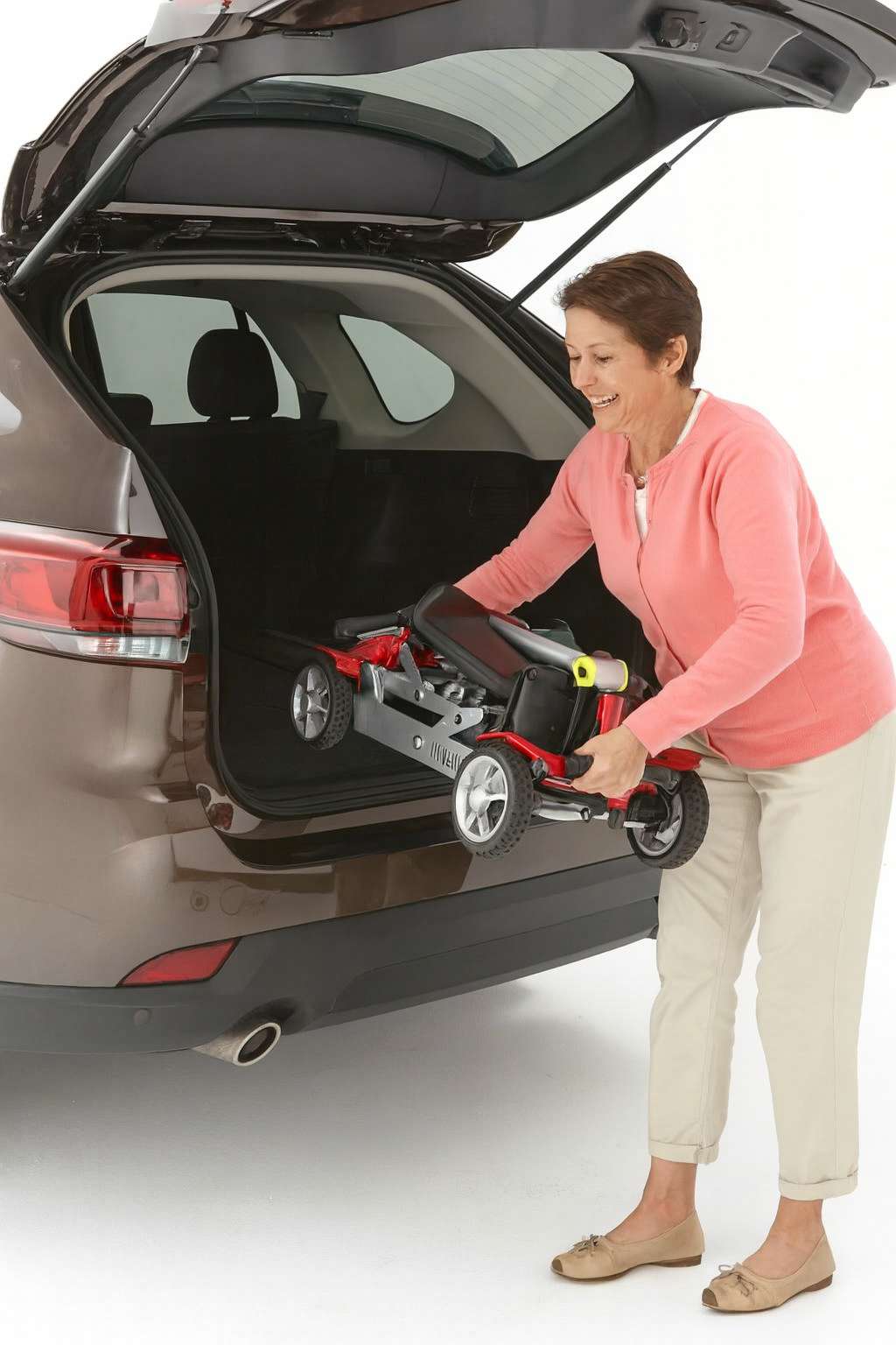 Dit is de kleinste en lichtste scootmobiel die er verkrijgbaar is . Zeer makkelijk op te vouwen en neemt heel weinig ruimte in in de auto . Ik heb er een reistas bij gekocht die perfect past zodat ik deze ook mee kan nemen in het vliegtuig . Zeer prettig geholpen in de winkel door een deskundige medewerker die verstand van de scootmobielen heeft . Er werd echt meegedacht waarvoor ik de scootmobiel wil gebruiken.