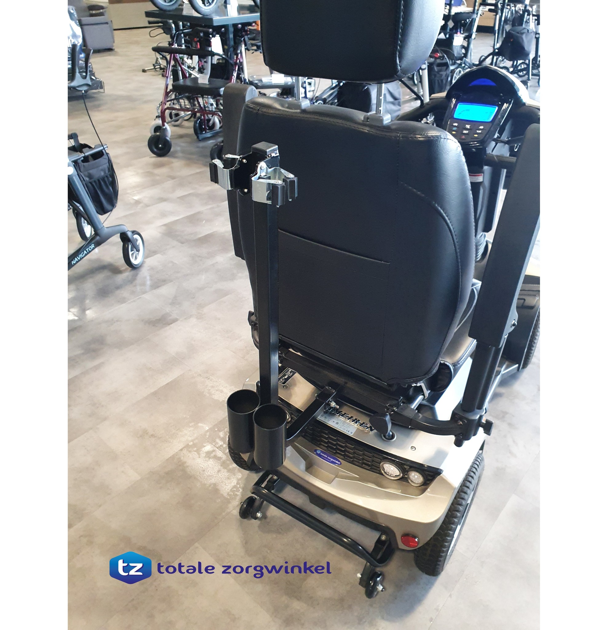 Optimaal mobiel blijven doet u met een rollatorhouder op de achterzijde van uw ( 2e handse )scootmobiel. U parkeert uw scootmobiel en vervolgt uw pad met uw rollator. Óf met uw wandelstok, want ook hier zijn houders voor. U ondervindt geen enkele hinder van deze rollator- of stokhouder tijdens het rijden. Dat geldt ook voor onze andere scootmobiel onderdelen.