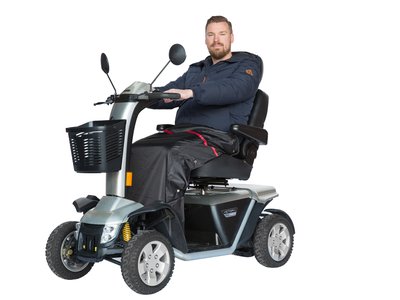 Kleding en hoezen die u en uw scootmobiel beschermen tegen weer en wind
