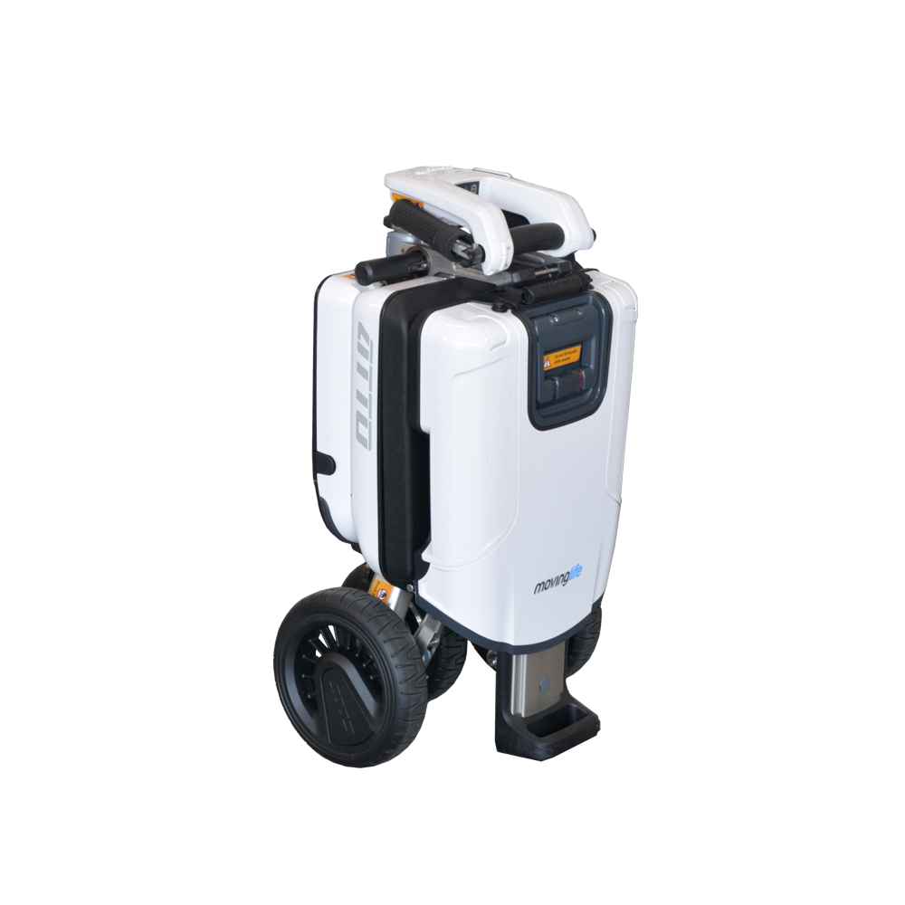 De Moving Life Atto scootmobiel is de meest compacte opvouwbare scootmobiel die er is . De Atto scootmobiel is binnen 10 seconden op te vouwen tot een rolkoffer en past in iedere auto, trein of vliegtuig. Eenmaal uitgevouwen is de Moving Life Atto de grootste in zijn soort en bied u een goed comfort. Mede door zijn kleine draaicirkel is de scootmobiel zowel binnen als buiten te gebruiken.