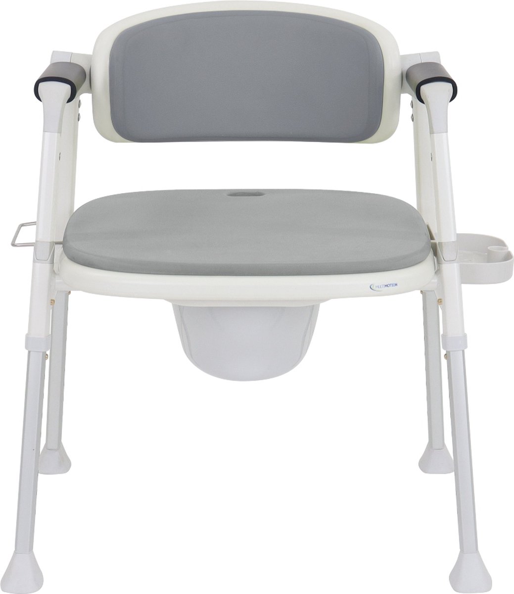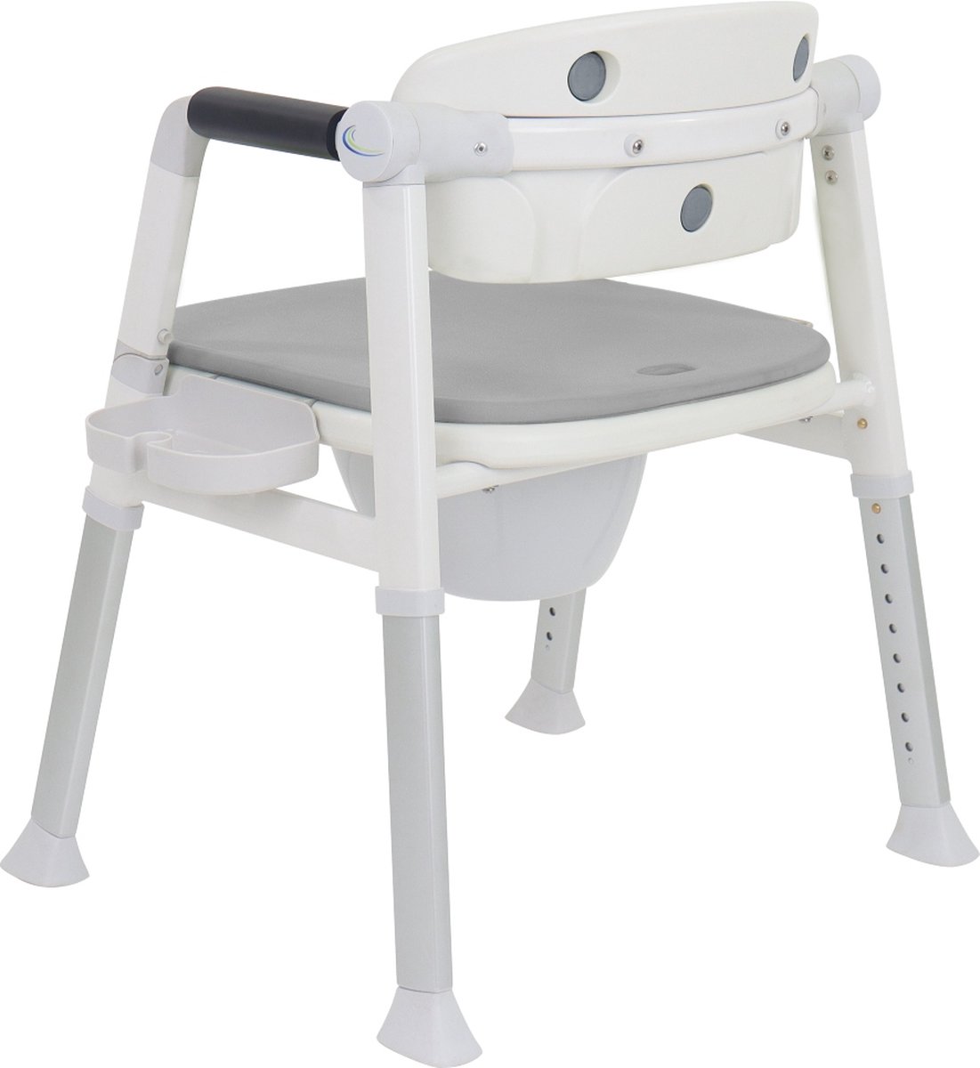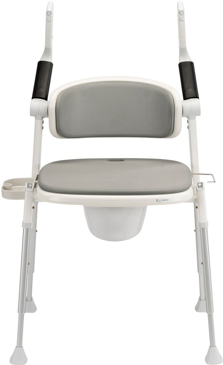 Door de verwijderbare toiletemmer plaats je de stoel eenvoudig over een bestaand toilet. De gebruiker profiteert dan van een verhoogde zithoogte en stevige armleuningen om veilig op te staan.