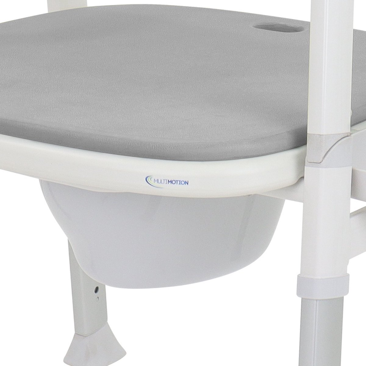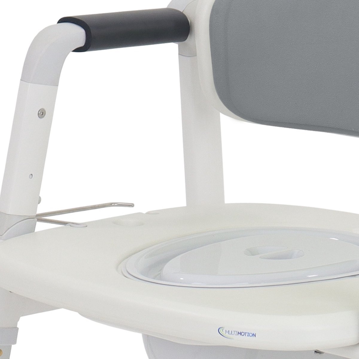 De MultiMotion douchestoel en toiletstoel in 1 is een veelzijdige en comfortabele oplossing voor mensen die ondersteuning nodig hebben bij het douchen of toiletgebruik.
