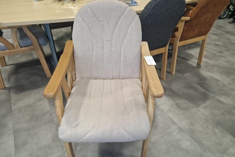 De senioren eetkamerstoel is een zeer veilige en stevige eetkamerstoel voor senioren met armleuningen. De rugleuning is in de perfecte hoek gezet zodat deze de juiste ondersteuning geeft maar u toch ontspannen zit. Hierdoor is het geen probleem langere tijd in deze stoel door te brengen . De stevige armleuningen in combinatie met de zithoogte maken het dat u makkelijk kunt opstaan en een veilige transfer kunt maken.