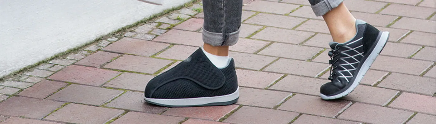 Verbandschoenen zijn speciaal ontworpen om de voeten te ondersteunen en beschermen bij medische problemen. Denk aan herstel na een operatie, wonden of voetklachten zoals hallux valgus, hamertenen of oedeem. De schoenen zijn extra breed, volledig open te leggen en eenvoudig te sluiten met klittenband. Dit zorgt voor: