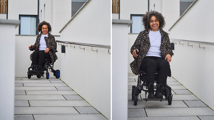 Aangedreven door twee sterke motoren kan deze rolstoel op veel ondergronden uit de voeten en is een grasveld of verhard zandpad geen enkel probleem. Ook met hellingen en dalingen heeft deze rolstoel geen probleem. De magneetrem zorgt ervoor dat u altijd geremd stil staat als u de joystick los laat waar u ook staat. Ook als de rolstoel uit staat is deze geremd zodat u veilig in en uit kunt stappen. De anti-lek banden zorgen ervoor dat u altijd met de juiste bandenspanning rond rijd en hier niet naar om hoeft te kijken. Ook heeft u geen kans op een lekke band zodat u nooit ergens komt stil te staan.