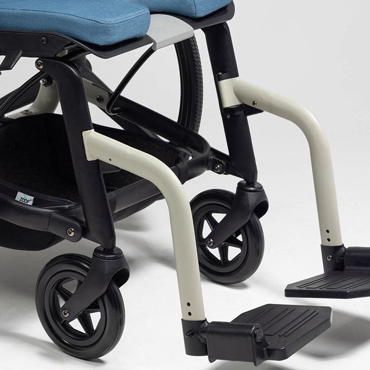 De modern vormgegeven duwbeugel ligt zeer prettig in de hand en geeft de Zoof een vriendelijke uitstraling. Door met een beugel te werken i.p.v handvatten kun je zelf bepalen waar je deze vast pakt als duwer en zul je zo in een natuurlijke houding achter de rolstoel lopen. Ook is deze zeer licht en gemakkelijk te duwen en kunt u zo eenvoudig sturen met de Zoof. De 24 inch variant kan natuurlijk ook zeer goed als zelfbeweger worden ingezet.