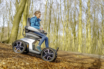Ook over het in en uitstappen is goed nagedacht op dit zo optimaal mogelijk te maken. U kunt links en rechts instappen op de Scoozy door de armleuning aan de zijde open te klappen. Op het moment dat u dit doet draaien de voorwielen automatisch weg zodat u bij uw voeten meer ruimte krijgt om in te stappen. Zo ziet u dat bij de Scoozy overal is over nagedacht.