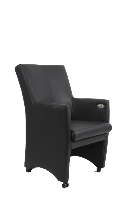 Wij hebben een eetkamerstoel met een sta-op zitting. De zitting hiervan lift uzelf omhoog. Deze stoel is standaard uitgevoerd met accu en tiptoets bediening aan de zijkant van de armleuning.