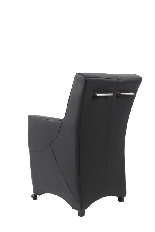 Het is mogelijk om de stoel met wieltjes of pootjes aan de onderzijde te krijgen. Wilt u graag de zijkanten door gestoffeerd ? Ook dat is mogelijk op bestelling Ook kan deze uitgevoerd worden met of zonder handgreep (enkel of dubbel) op de rugleuning, dit voor het makkelijk verplaatsen van de stoel.