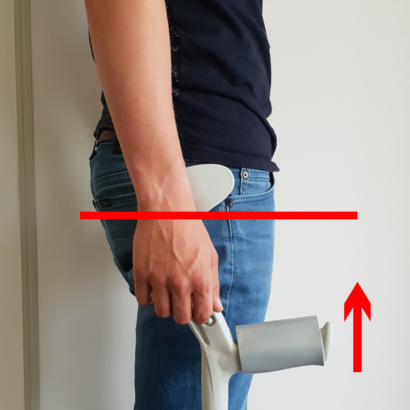 - Het handvat van de elleboogkruk moet op polshoogte komen.