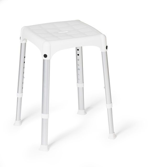 Net als de douchestoel is een douchekruk ook een alom bekend hulpmiddel voor in de badkamer. Deze zijn verkrijgbaar in verschillende soorten en maten . Kijk bij de aanschaf van een douchekruk goed naar de minimale en maximale hoogte verstelling, het maximale gebruikersgewicht, de zitbreedte en de breedte van de poten. Een douchekruk wordt namelijk vaak aangeschaft als een douchestoel te groot is . Dan is het wel belangrijk dat deze past in uw doucheruimte. Ook zijn er douchekrukken met opstaande handvatten zodat makkelijk op kunt staan en gaan zitten door u op te drukken aan de handvatten. Opdrukken kost nu eenmaal minder kracht dan optrekken aan bijvoorbeeld een wandbeugel. Een douchekruk is makkelijk en licht te verplaatsen zodat u deze onder de douche kunt gebruiken maar ook bijvoorbeeld met het aankleden of tanden poetsen. De onderzijde van onze douchekrukken hebben antislip doppen zodat deze stevig en stabiel blijft staan.