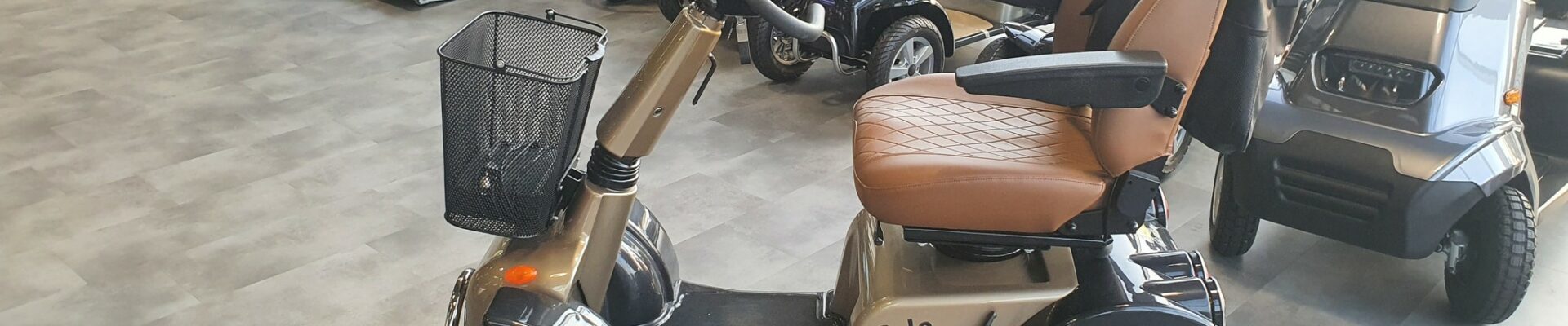 Bij onze showroom kunt u altijd rustig binnen lopen en zo deze uniek geveerde scootmobiel uitgebreid proberen buiten bij onze showroom.