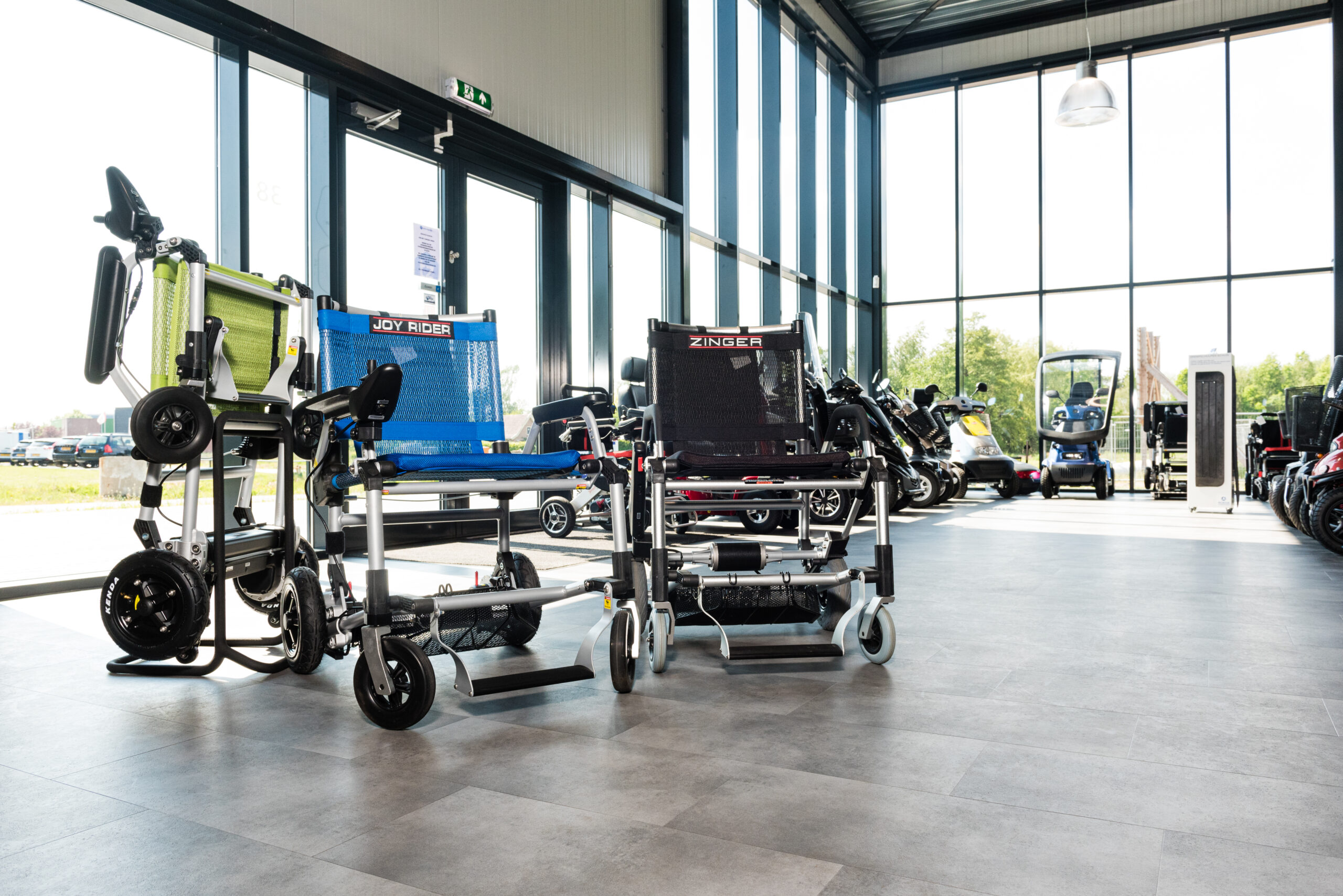 Als officiële dealer van Nederland voor de Splitrider en Joyrider opvouwbare elektrische rolstoelen kunt u deze bij ons altijd proberen en bekijken in onze showroom. Ook alle mogelijke opties zijn op voorraad en kunnen eventueel geplaatst worden terwijl u wacht. Besluit u de Splitrider of Joyrider met veel opties te nemen die even tijd nemen om te monteren dan bezorgen wij deze rolstoel op afspraak helemaal gratis bij u aan huis. Daar nemen we de rolstoel nogmaals helemaal met u door. Maar vaak kunt u des gewenst ook meteen een nieuw exemplaar mee nemen uit onze showroom . Deze staan al kant en klaar in onze showroom.