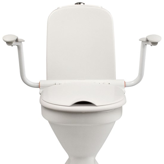 Het is ook mogelijk om voor een complete toiletbril met armleuningen of een toiletveroger met armleuningen te kiezen. Deze wordt ook zonder te boren op het toilet gemonteerd, in de huidige gaten van uw toilet wanneer de bestaande bril verwijderd wordt. De armleggers zijn opklapbaar dit maakt het ook mogelijk om een zijdelingse transfer te maken.