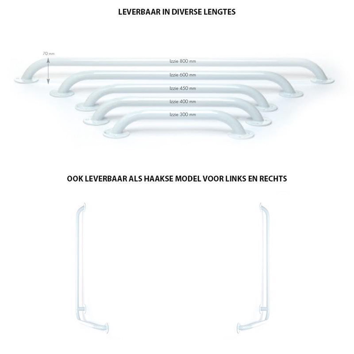 Voor het toilet zijn er meerdere hulpmiddelen mogelijk wanneer u extra steun nodig heeft bij het opstaan. Vaak wordt er gedacht aan een wandbeugel, deze zijn eigenlijk ook overal te plaatsen in huis bijvoorbeeld in de woonkamer, keuken of voor in de slaapkamer. De wandbeugels zijn er in staal, aluminium of kunststof en worden geleverd incl. schroeven en pluggen en dienen aan de muur gemonteerd te worden. De afmetingen variëren, ze zijn verkrijgbaar vanaf 30 cm t/m 80 cm lang. Voor in het toilet wordt vaak een afmeting van 30 cm of 40 cm gebruikt.